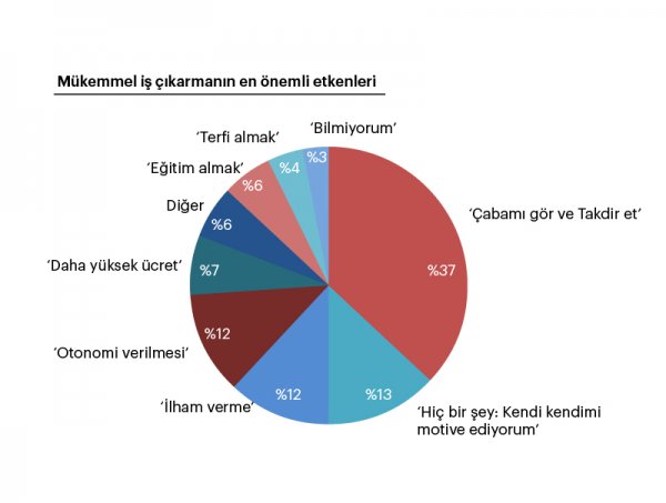 Katılımcılar soruyu kendi yöntemleriyle cevapladılar ve birçok değişik cevap vardı. Fakat ortaya bir şablon çıktı. Katılımcıların %37’si kişisel anlamda takdir edilmenin ve görülmenin daha iyi iş çıkarmalarını sağladığını belirtti.
